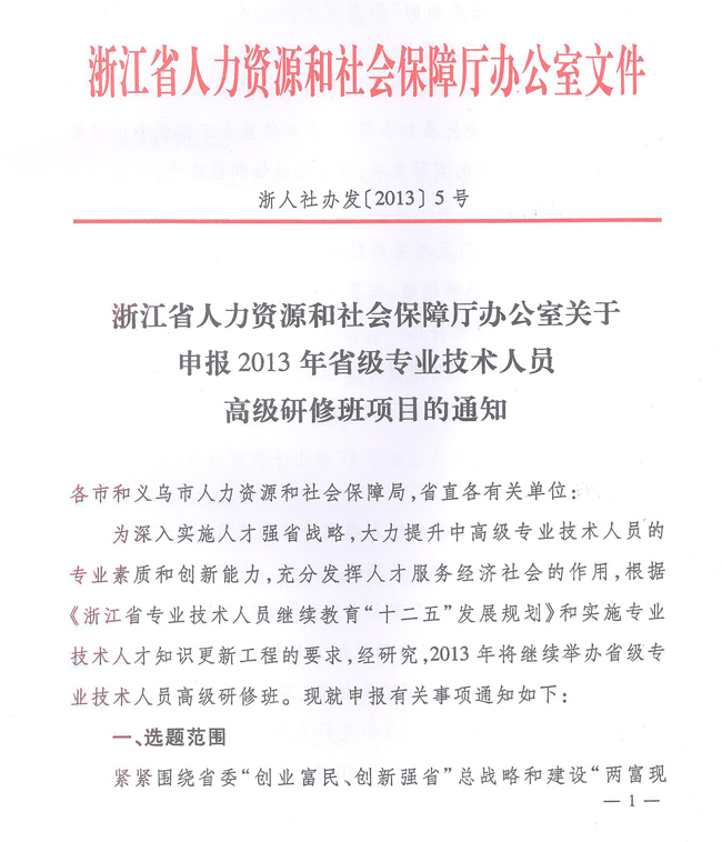 關(guān)于申報(bào)2013年省級(jí)專業(yè)技術(shù)人員高級(jí)研修班項(xiàng)目的通知