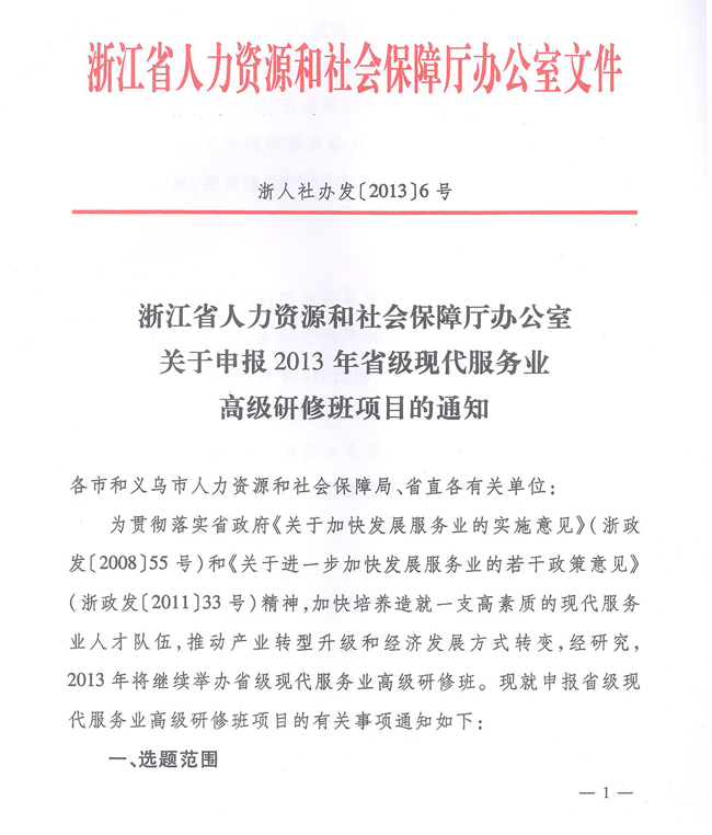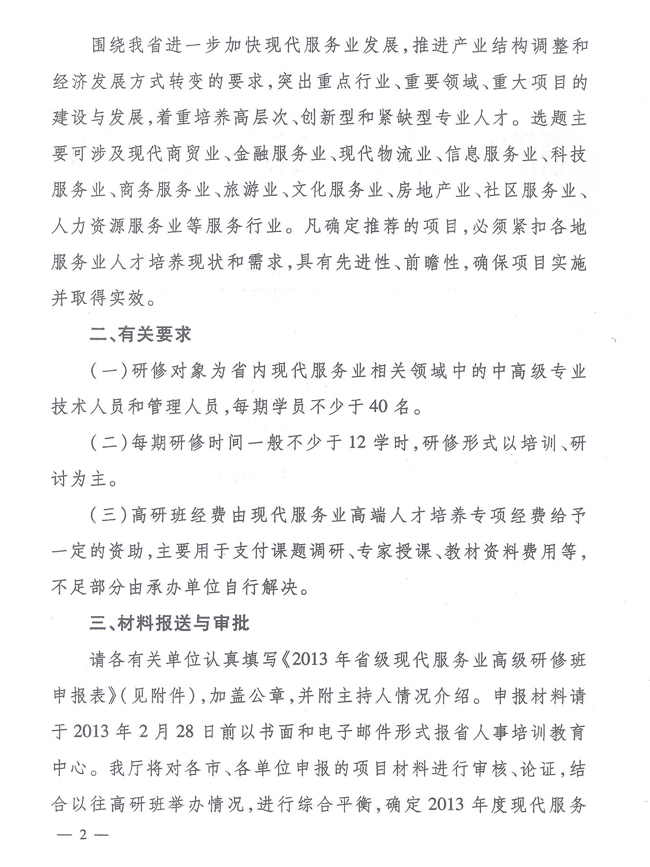 關于申報2013年省級現(xiàn)代服務業(yè)高級研修班項目的通知