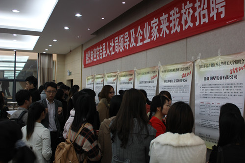 “應(yīng)屆畢業(yè)生找工作往往比較難,沒有工作經(jīng)驗(yàn),應(yīng)聘過程中常常碰壁,安吉企業(yè)特地組團(tuán)來招聘并提供實(shí)習(xí)崗位(儲備干部),這是難得的機(jī)會!睎|華理工大學(xué)招生就業(yè)處相關(guān)負(fù)責(zé)人在招聘會現(xiàn)場接受媒體采訪時說,該校很多專業(yè)是安吉企業(yè)急需的,企業(yè)特別提供實(shí)習(xí)崗位(儲備干部),對雙方來說是一種共贏。