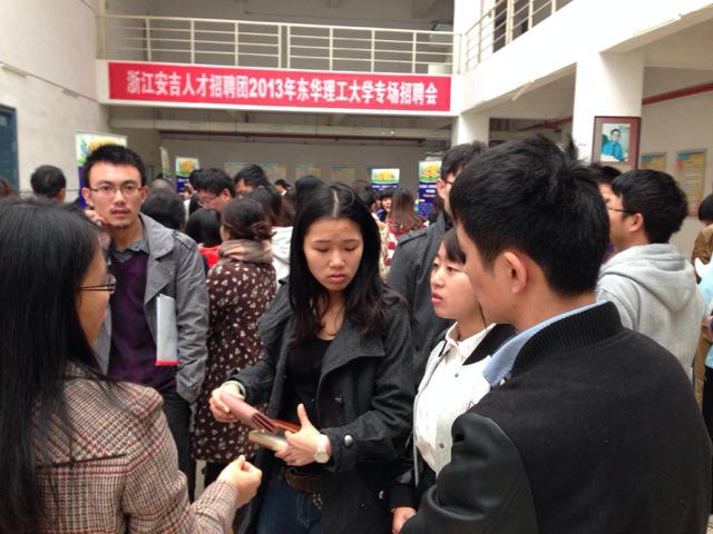 12月4至6日,安吉縣人力社保部門組織縣內(nèi)10家規(guī)模企業(yè)前往江西東華理工大學(xué)舉辦專場(chǎng)招聘會(huì),招聘需求主要涉及我縣外貿(mào)、市場(chǎng)營(yíng)銷、電商、經(jīng)濟(jì)管理和碩士研究生等方面人才。學(xué)校1000余名相關(guān)專業(yè)本科、碩士畢業(yè)生參加了此次招聘會(huì),同學(xué)們非常珍惜這次招聘機(jī)會(huì),踴躍的遞交簡(jiǎn)歷,并與用人單位坦誠(chéng)交流,展現(xiàn)自我才能,接受用人單位挑選。此次招聘共提供各類崗位83個(gè),收到簡(jiǎn)歷346份,初步達(dá)面意向157人。