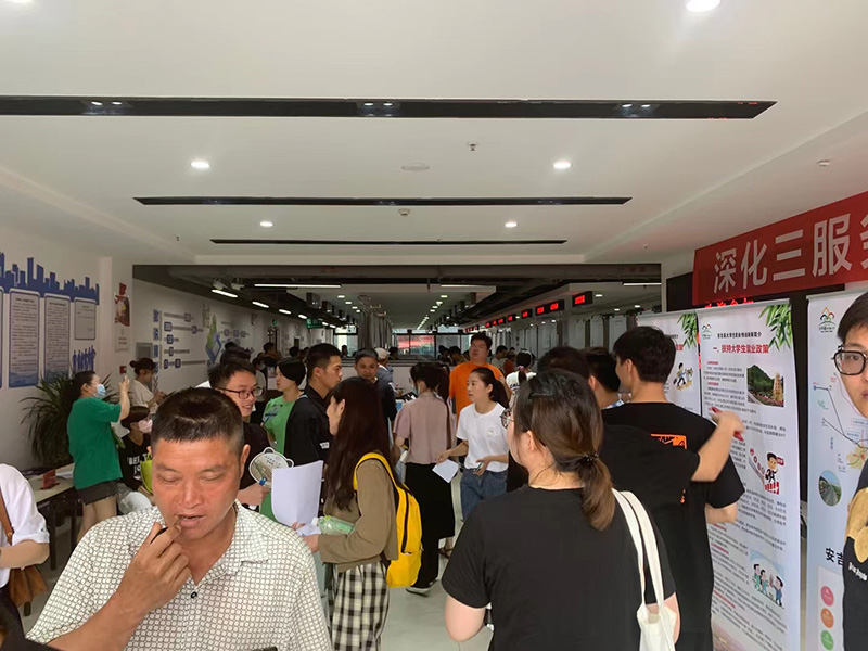 為了進(jìn)一步加大大學(xué)生招引力度,暢通人才引進(jìn)渠道,切實(shí)吸引一批人才到安吉就業(yè)創(chuàng)業(yè)。7月8日上午,2021年安吉縣高校畢業(yè)生專場(chǎng)招聘會(huì)在縣人力資源市場(chǎng)舉行,來(lái)自縣內(nèi)外的大學(xué)生們紛至沓來(lái),現(xiàn)場(chǎng)熱鬧非凡。